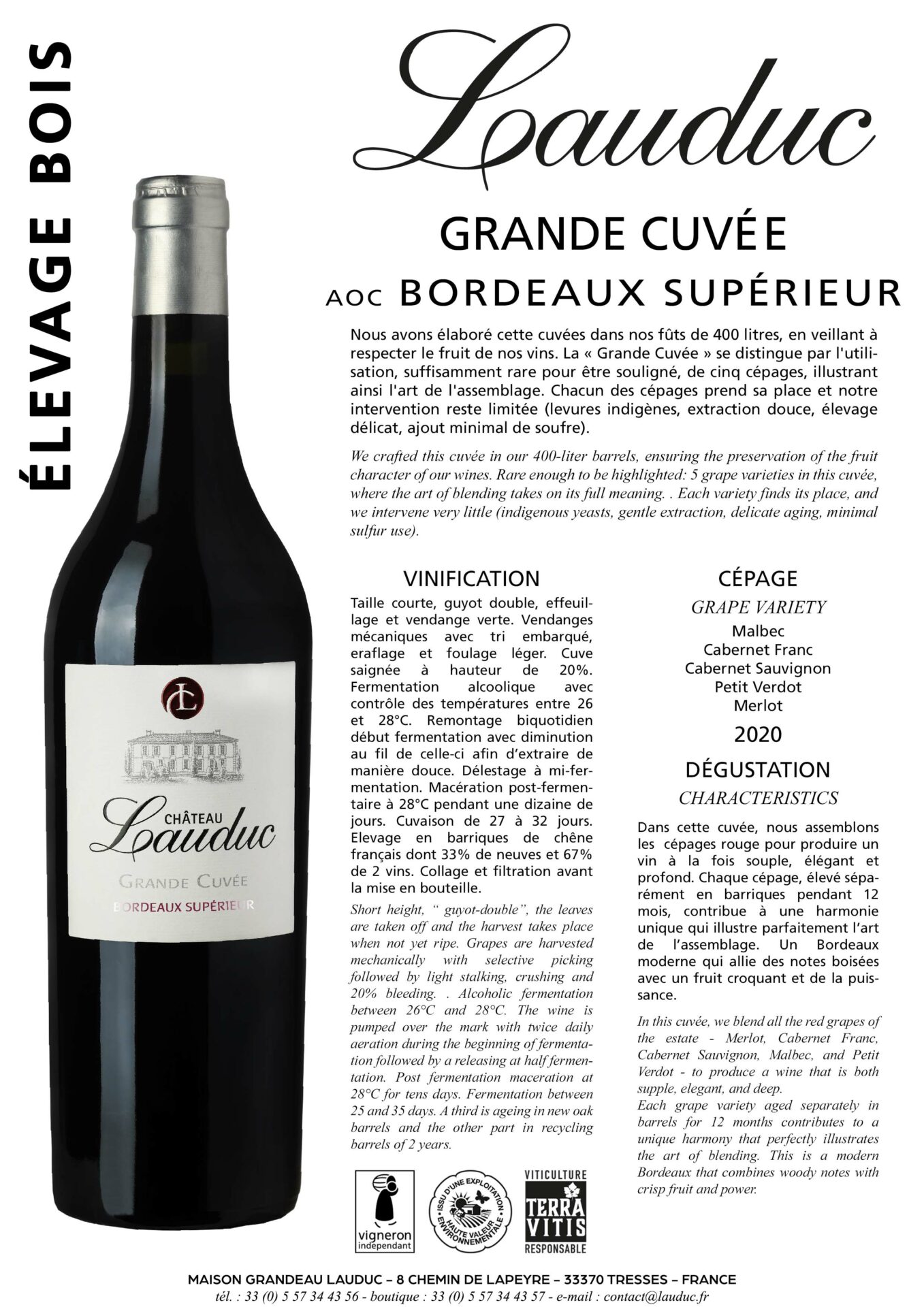 Cépages : Merlot, Cabernet Sauvignon, Cabernet Franc, Petit Verdot et Malbec